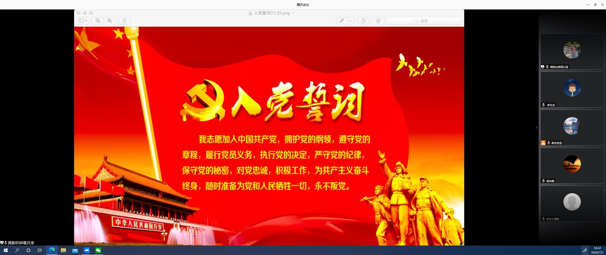 李楠明、赵海峰、于跃三名同志分别代表学院老中青三代共产党员回顾了入党历程,表达了对党的敬仰与热爱,将继续在学院未来事业的发展当中坚守入党初心,发挥党员模范作用。随后,全体党员在优秀党务工作者王秋同志的带领下共同重温入党誓词。