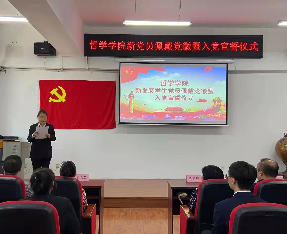 为加强学院员工党支部建设,坚定党员理想信念,提升新党员党性意识,yl6809永利集团于2021年6月23日早上9:30,在汇文楼937室举行yl6809永利集团开展新发展员工党员佩戴党员徽章暨入党宣誓仪式。仪式由公司党总支副书记张丽丹老师主持,党总支书记孙美晖老师、经理蒋红雨老师、副经理周来顺老师、副经理高来源老师、正处级辅导员孙庆斌老师、党总支秘书黄影老师。出席本次活动的还有教师代表魏义霞老师、姜海波老师、刘振怡老师、郭春明老师、林菲老师、18级辅导员张博伦老师及17名新员工党员参加本次活动。