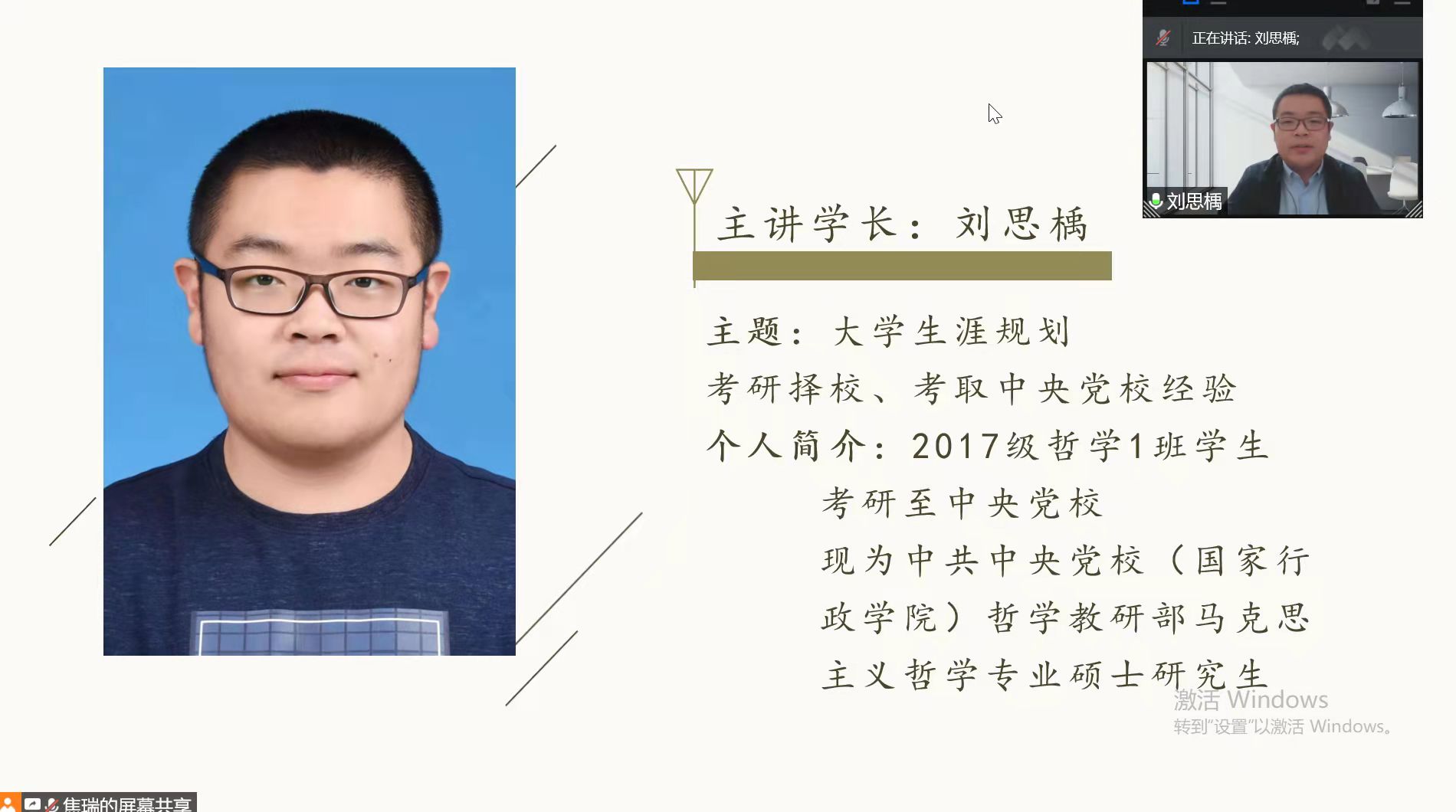接下来,刘思楀学长为大家介绍了大学的生涯规划。他结合自身经验,在考研院校选择导向、高校选调生政策,以及考研参考书目等方面给予了同学们宝贵的经验指导。除此以外,学长强调了了yl6809永利集团的学术地位和“帮带”传统,大大增强了同学们的学科自信。