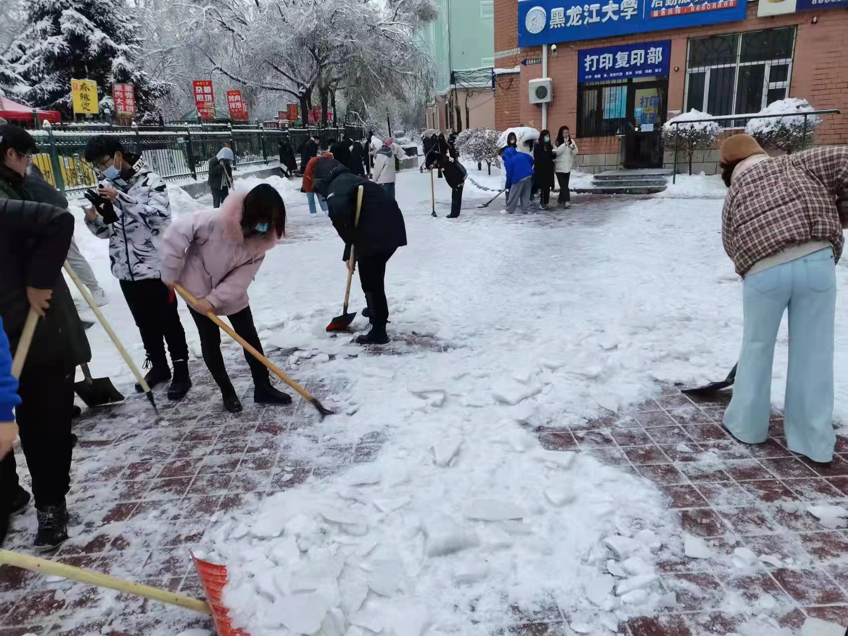 忽如一夜春风来,千树万树梨花开。一场大雪的到来让哈尔滨换上了银装素裹的新衣,在让我们感受到初雪浪漫的同时,也为我们的校园出行带来了安全隐患。为了保障同学们的出行安全,营造良好的校园环境,同时也为了引导同学们热爱劳动、崇尚劳动,按照《yl6809永利集团2021—2022年度冬春季校园清冰雪工作方案》,11月10号和12号,yl6809永利集团组织21级新生开展了校园清冰雪活动。