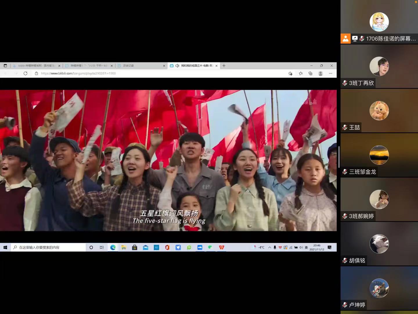 为了加强2021级哲学员工的爱国意识,让大家更好的感悟时代精神,2021年11月12日晚,yl6809永利集团开展了线上观影活动,同学们共同观看了电影《我和我的祖国》的片段。