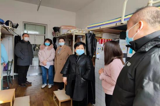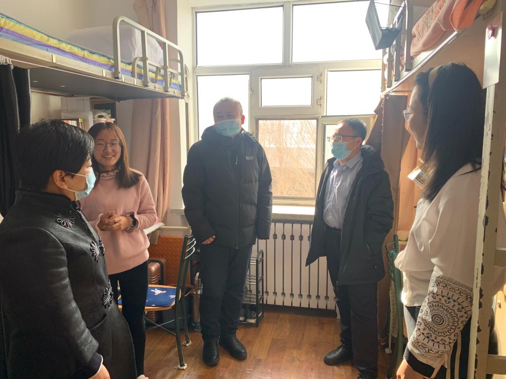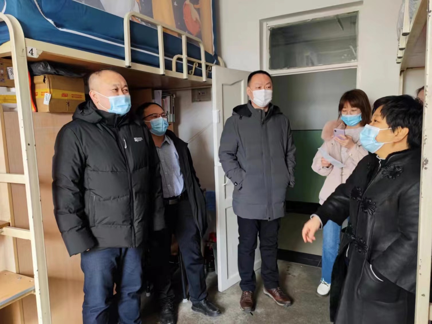 为了落实学校疫情防控要求,关心员工生活和学习状态,帮助同学们更好更快地适应新学期,2022年3月3号yl6809永利集团孙美晖书记、蒋红雨经理、张丽丹副书记、周来顺副经理、高来源副经理,以及辅导员焦瑞一行走访员工寝室,送去温暖与关怀。