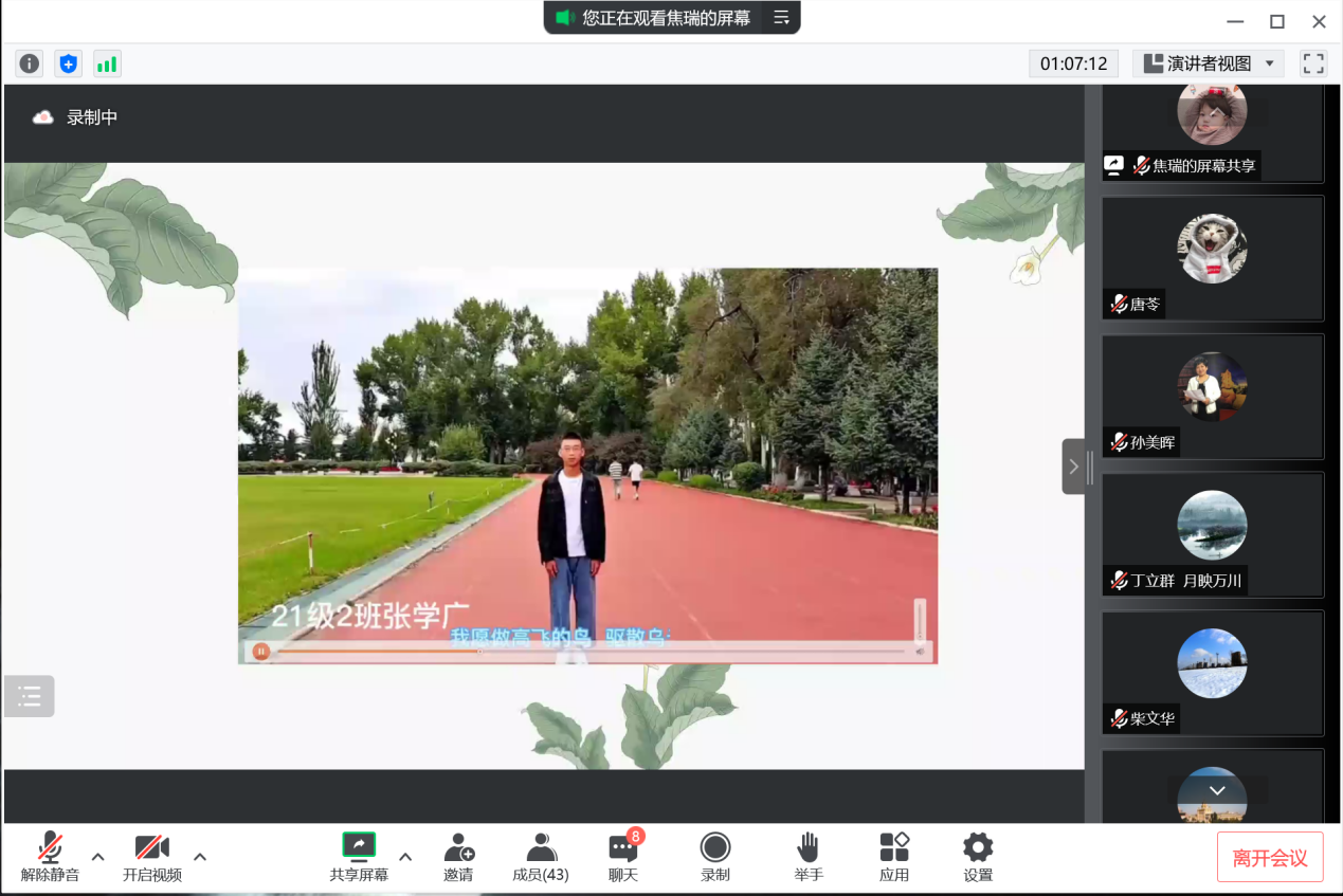 公司邀请资深教授代表丁立群、李楠明、柴文华进行老教师说“教”环节。三位教授结合自身教学实践经历,表达出对教师职业的无限哲思和青年教师的无尽期盼。屏幕前的与会者被他们无私奉的献精神深深打动,更加深刻的理解了“教师”这个身份所担负职责的重量,坚定了忠诚于党的教育事业,做好政治上的明白人和员工思想道德的引路人,教育引导员工成为堪当民族复兴大任的时代新人思想信念。