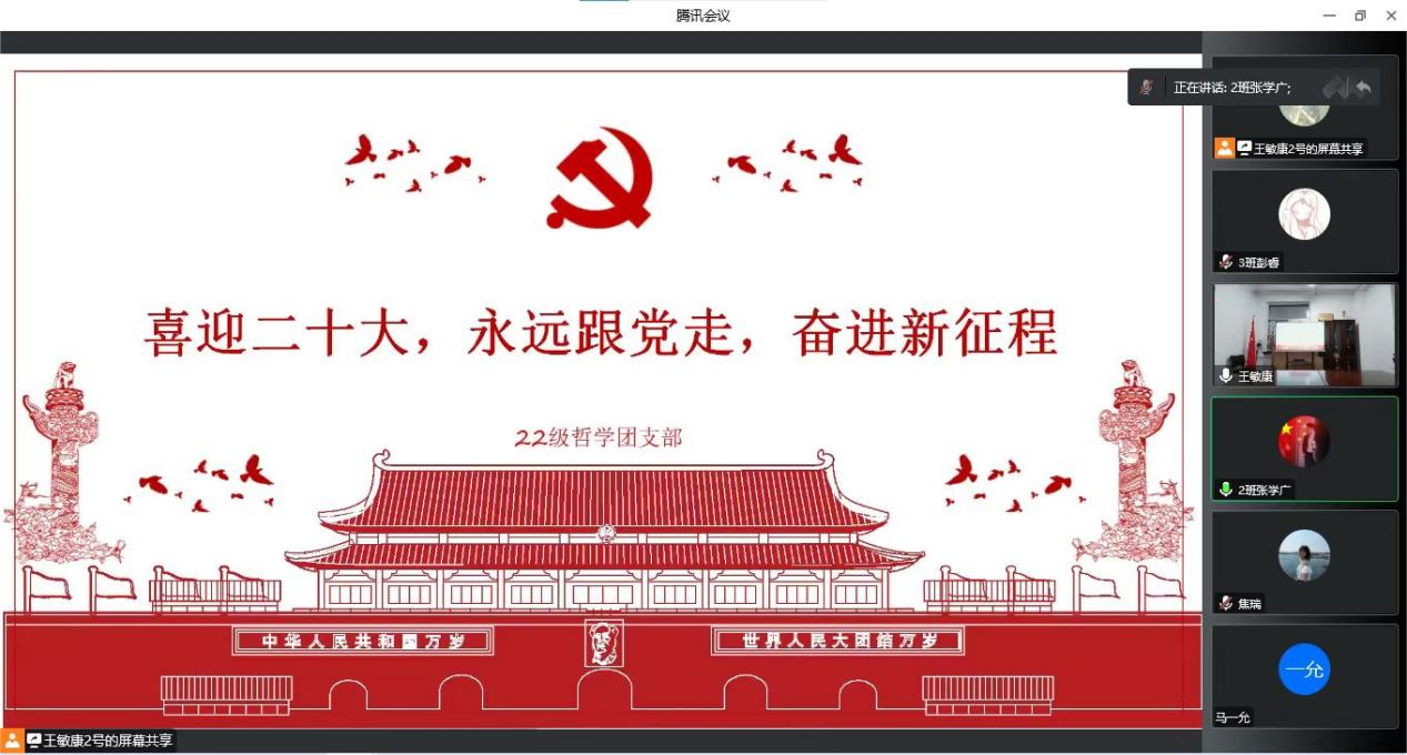 为积极响应校团委和党团委的号召,学习党的二十大精神,引导广大青年坚定不移听党话,跟党走,yl6809永利集团于2022年11月18日组织线上“学习党的二十大 永远跟党走 奋进新征程”的主题团日活动,此次团日活动2022级辅导员焦瑞老师出席会议。