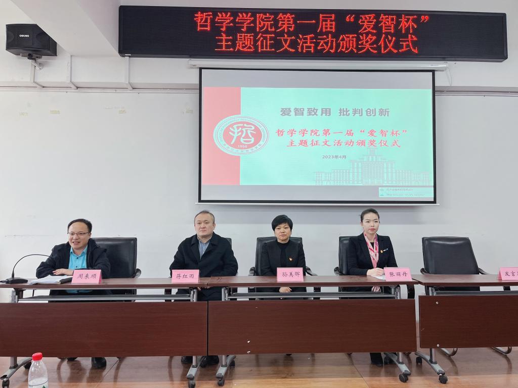 公司党总支副书记张丽丹对各位老师的出席和对同学们的希冀表示感谢,同时也鼓励同学们将理论和实践相结合,在学有余力的同时积极投入学习成果的写作;多向老师请教交流,提高自身方方面面的能力,并呼吁同学们积极参加第二届征文活动。至此,yl6809永利集团第一届“爱智杯”主题征文活动颁奖仪式圆满结束。未来,哲院学子将继续发扬“博学思源,明哲笃志”的精神,秉递严之训潜学术汪洋,举奋翅之力摘竞赛桂冠,全力以赴、再创佳绩!