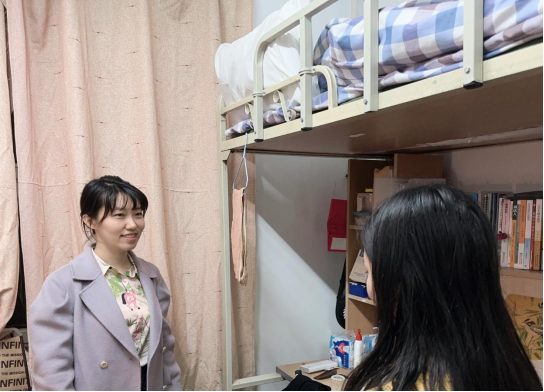 最后,各年级辅导员为了更好的关心同学们,在临近五一假期到来之际,走访各年级员工寝室,嘱咐各位同学在五一期间做好规划,安全出行,有任何突发情况要及时与学校和家长进行联系,做到安全时刻记心中。