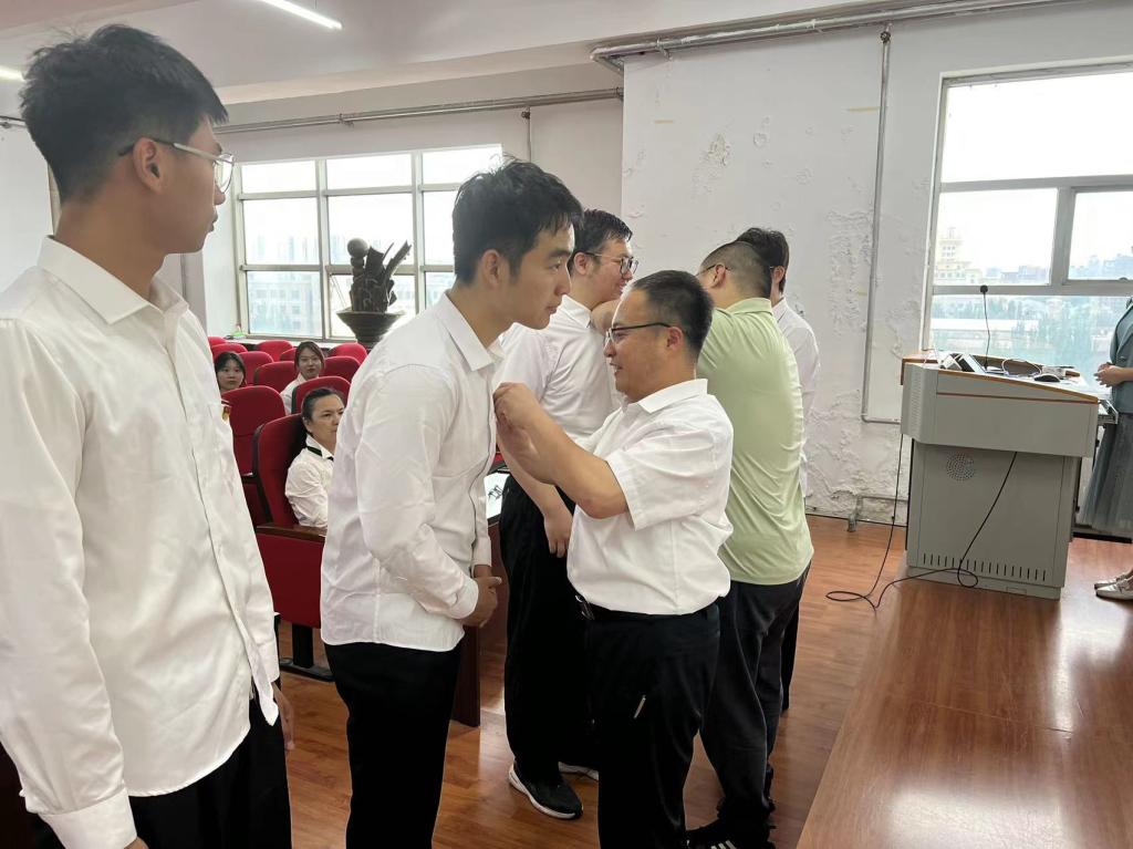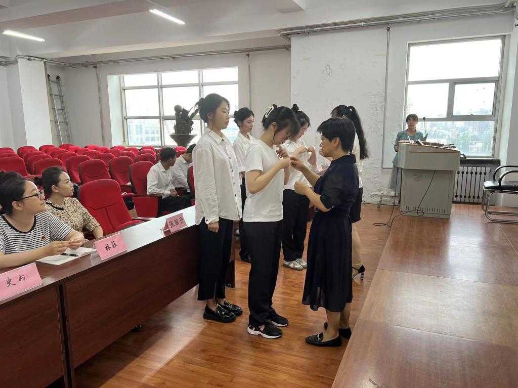 仪式第一项是为新发展的员工党员佩戴党员徽章,学院领导、教师为员工党员亲手佩戴党员徽章的一刻,新发展党员感受学院教师对自己的希冀,更感到自身的责任与义务,党徽在胸前,责任在臂膀,作为员工党员,必定时刻听党话、知党恩、跟党走,不负嘱托与希冀。