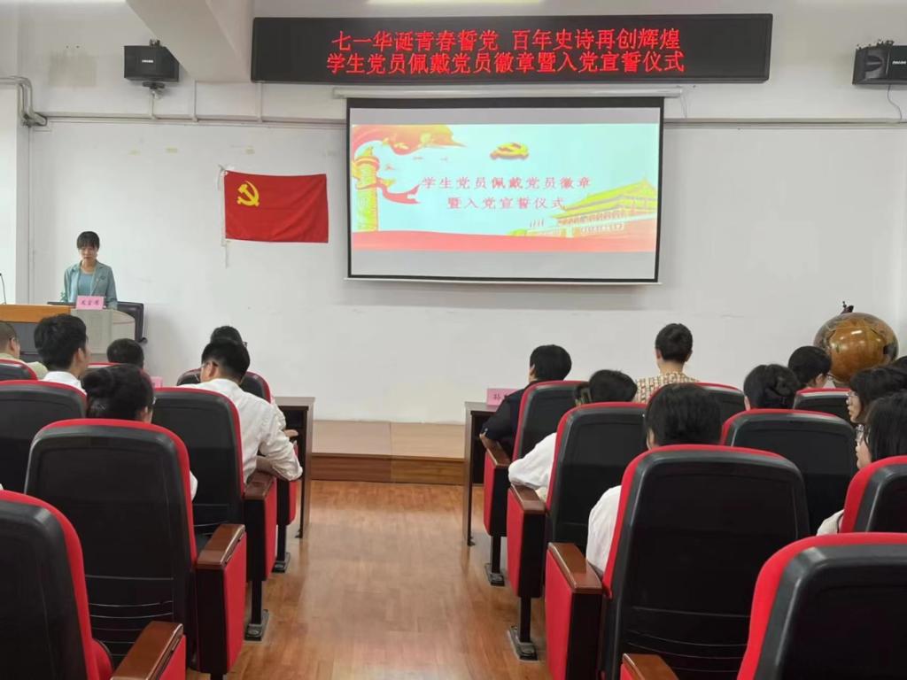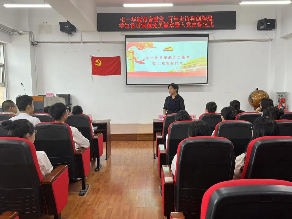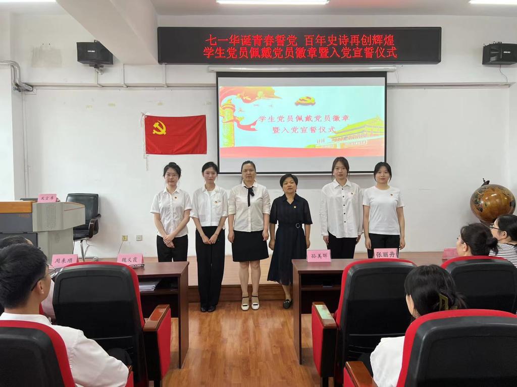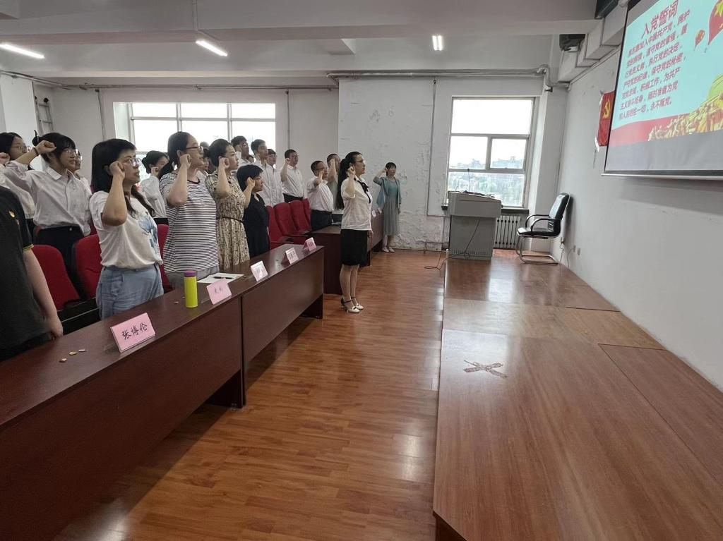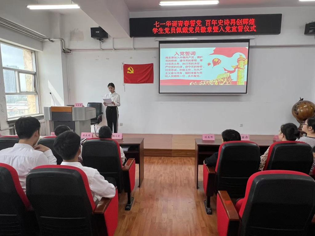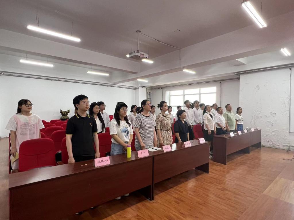 为庆祝中国共产党成立102周年,迎接"七一"建党节,深入推进学习贯彻习近平新时代中国特色社会主义思想主题教育,切实加强党性教育、坚定员工党员的理想信念、增强员工党员的组织归属感和身份认同感,yl6809永利集团于2023年6月28日下午在汇文楼937教室开展“七一华诞青春誓党,百年史诗再创辉煌”员工党员佩戴党员徽章暨入党宣誓仪式。出席本次入党宣誓仪式的有公司党总支书记孙美晖、yl6809永利集团教授及博士生导师魏义霞老师、公司党总支副书记张丽丹、yl6809永利集团副经理周来顺,yl6809永利集团教师党员代表林菲、史书、于跃、张灵馨,yl6809永利集团辅导员张博伦,yl6809永利集团全体员工预备党员参加活动,仪式由yl6809永利集团辅导员焦瑞主持。