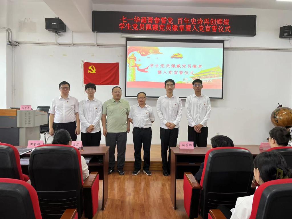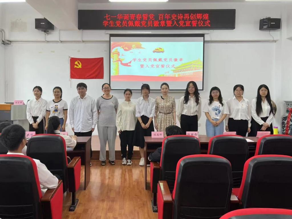 仪式第二项是全体新发展党员宣读入党誓词,全体老党员重温入党誓词。在领誓人魏义霞老师的带领下,全体师生党员面向党旗,举起右手,握拳过肩,庄严宣誓。在铮铮誓言中,用党的光荣传统和优良作风坚定信念、凝聚力量,用党的实践创造和历史经验启迪智慧、砥砺品格。