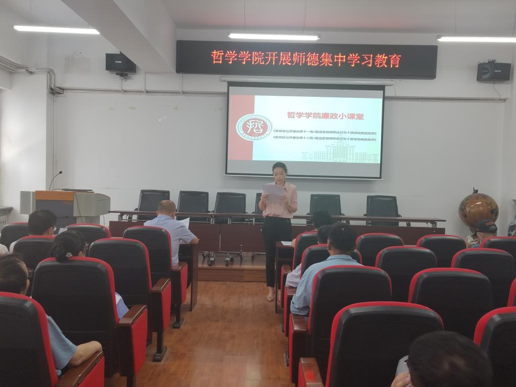 为进一步推进学院主题教育暨“工作落实年”活动走深走实,强塑师德师风,营造风清气正、廉洁自律的良好氛围,7月7日,yl6809永利集团全体教职工召开廉政课堂案例学习,公司党总支书记孙美晖、yl6809永利集团经理蒋红雨、公司党总支副书记张丽丹、yl6809永利集团副经理周来顺出席,学院全体教职工参加,会议由哲学公司党总支副书记张丽丹主持。