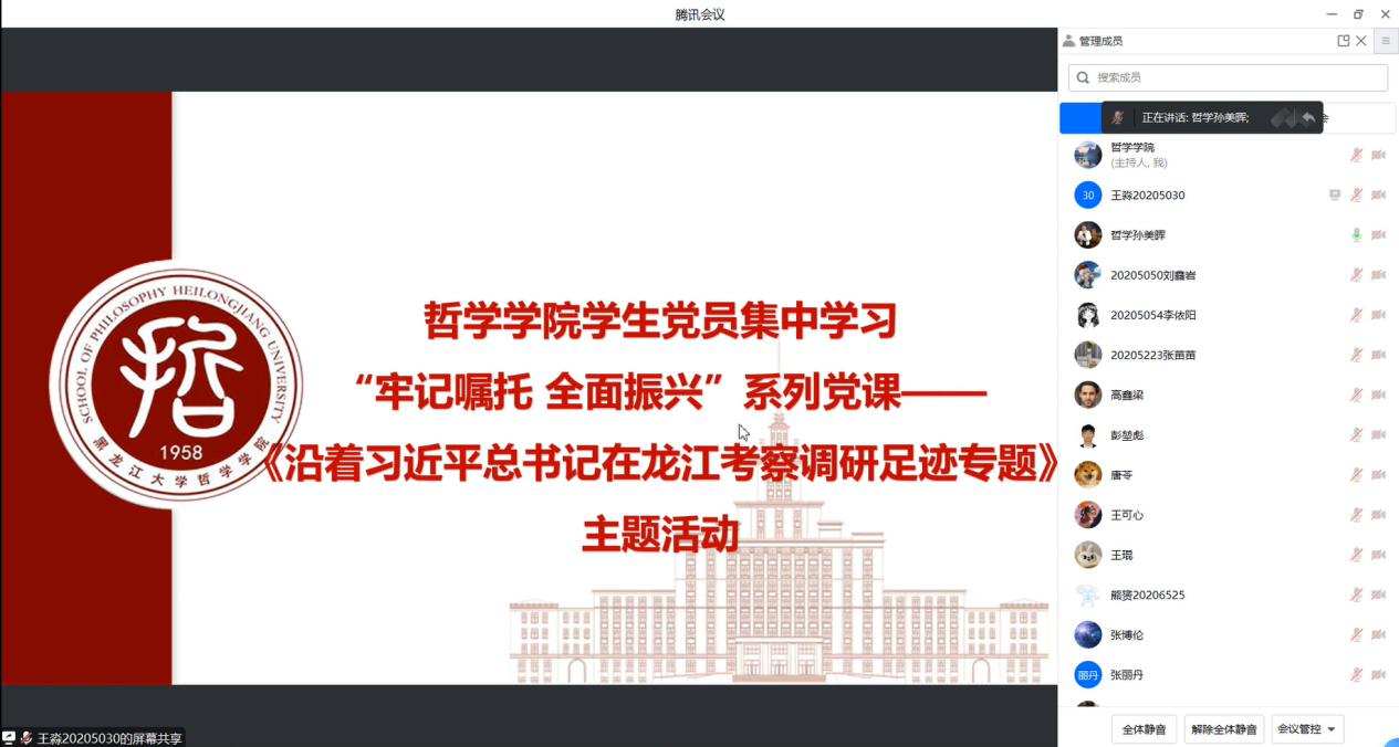 为深入贯彻习近平总书记对东北地区和我省重要讲话重要指示精神,推动学习贯彻习近平新时代中国特色社会主义思想主题教育走深走实。2023年7月31日—8月5日,哲学公司根据公司党委组织部的工作要求,积极动员并着力搭建学习平台,组织员工党员及入党积极分子集中学习、教师党员结合个人情况自行学习省委主题教育领导小组办公室制作的《“牢记嘱托 全面振兴”系列党课——沿着习近平总书记在龙江考察调研足迹专题》(第1-6期)。