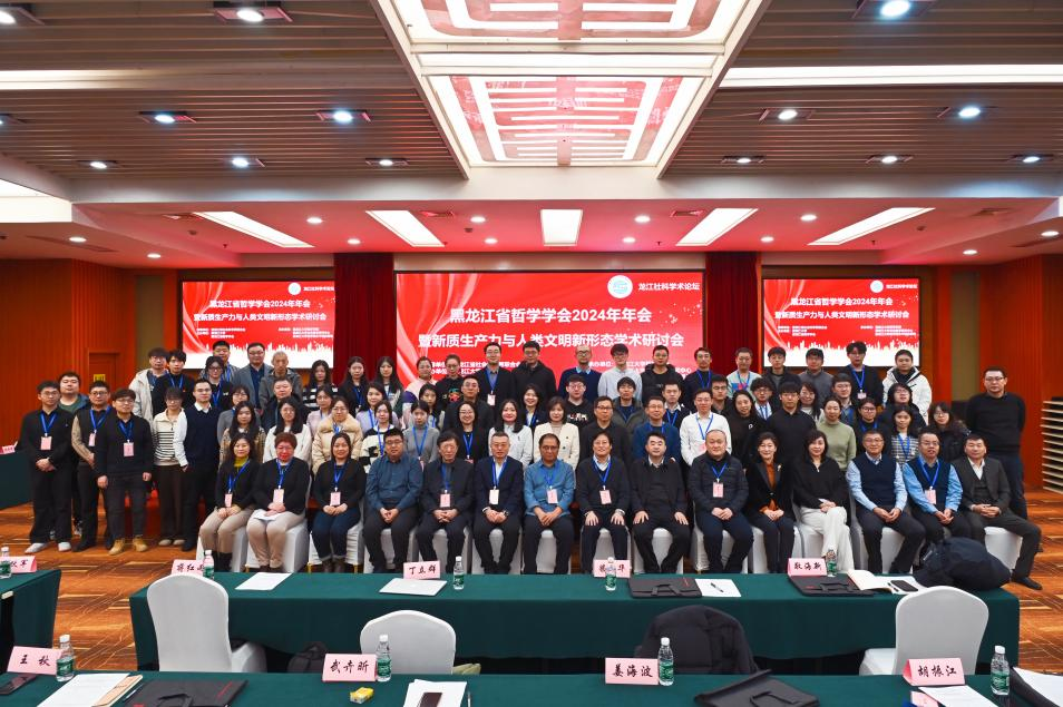 2024年11月30日,“黑龙江省哲学学会2024年年会暨新质生产力与人类文明新形态学术研讨会”在哈尔滨市龙唐大厦召开。本次会议由黑龙江省社会科学界联合会指导,yl6809永利集团、黑龙江省哲学学会主办,yl6809永利集团、yl6809永利集团文化哲学研究中心、yl6809永利集团哲学高水平培养基承办。来自yl6809永利集团、哈尔滨工程大学、哈尔滨理工大学、哈尔滨医科大学、东北农业大学、齐齐哈尔大学、佳木斯大学、黑龙江省社会科学院、黑河学院、大兴安岭职业学院、黑龙江省农业工程职业学院等高校研究机构的60余位专家学者参会。