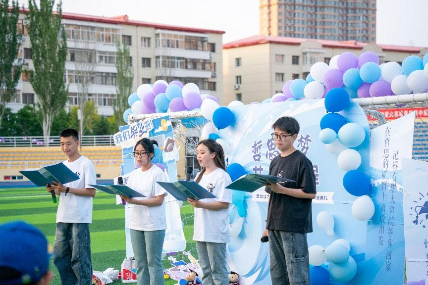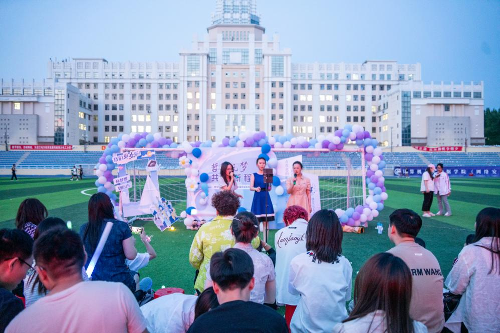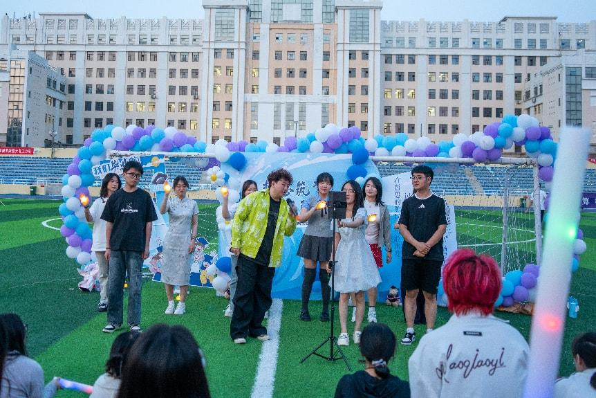 暮色渐浓,操场上的氛围却愈发炽热。歌会在饱含深情的朗诵中拉开帷幕,朗读者们以铿锵有力的话语,诉说着青春的激昂与不舍,字字句句都饱含着对校园生活的眷恋,对未来征程的期许。随后,活力四射的舞蹈登场,舞步灵动,热情奔放。各类歌曲表演更是将歌会氛围推向高潮,抒情的慢歌,同学们用细腻的嗓音娓娓道来,诉说着青春里的懵懂与成长;动感的快歌,瞬间点燃全场热情,让观众们忍不住跟着节奏摇摆;学院二级心理辅导站带来温暖而充满力量的合唱,唱出了毕业生们对未来的憧憬与向往。孙庆斌老师携手学院女子排球队走上舞台,共同唱响昂扬的旋律。赛场上队员们奋力拼搏的坚韧,训练中孙老师日复一日的悉心指导,都化作歌声中无畏前行的勇气,令人心潮澎湃。