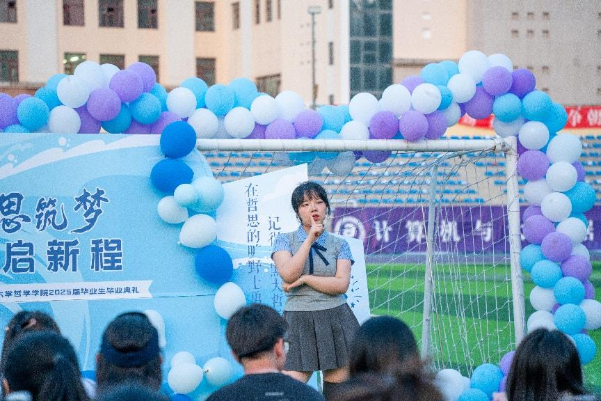 2025年5月29日傍晚,yl6809永利集团举办“思哲辨理展风华,驭梦扬帆赴山海”2025届毕业生草坪音乐联欢会,yl6809永利集团党委书记孙美晖、yl6809永利集团经理蒋红雨、yl6809永利集团党委副书记王贵宇、yl6809永利集团副经理周来顺、正处级辅导员孙庆斌老师以及各年级辅导员齐聚现场,与毕业生们共赴这场镌刻哲思与温情的歌会。从激昂歌舞到深情朗诵,从惊喜互动到师长寄语,整场联欢会精彩纷呈,师生们用歌声、祝福与陪伴,为毕业生们点亮奔赴未来的启航之路。