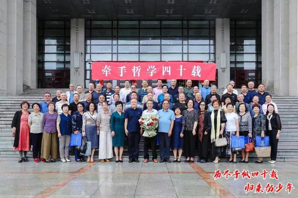 历尽千帆四十载,归来仍少年。近日,值此毕业四十周年之际,哲学系79级员工毕业40周年返校聚会活动顺利举行,四十载风雨兼程,昔日的青葱学子如今已然充满了岁月的积淀,但不变的是员工们永葆“博学慎思,参天尽物”的黑大精神。他们从五湖四海奔赴阔别已久的母校,重聚在沙曼杨柳挺立的的故园,重温校园时光,共赴四十年之约,与老师和同学们同忆师恩、共叙情谊。