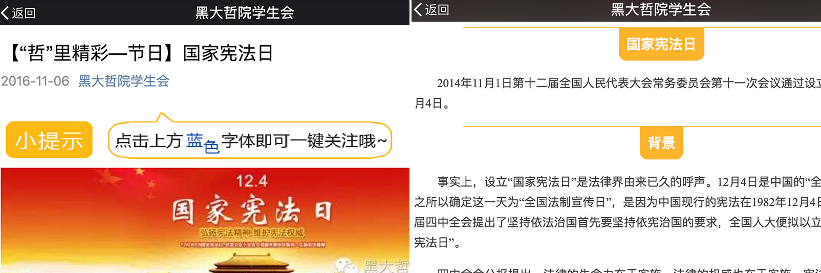 为弘扬宪法精神,增强同学们法治观念,在国家宪法日来临之际,根据《教育部办公厅关于举办全国员工“学宪法讲宪法”活动的通知》及省教育厅和学校相关工作要求,2016年11月初,哲学学院开展了学习宪法的系列活动。