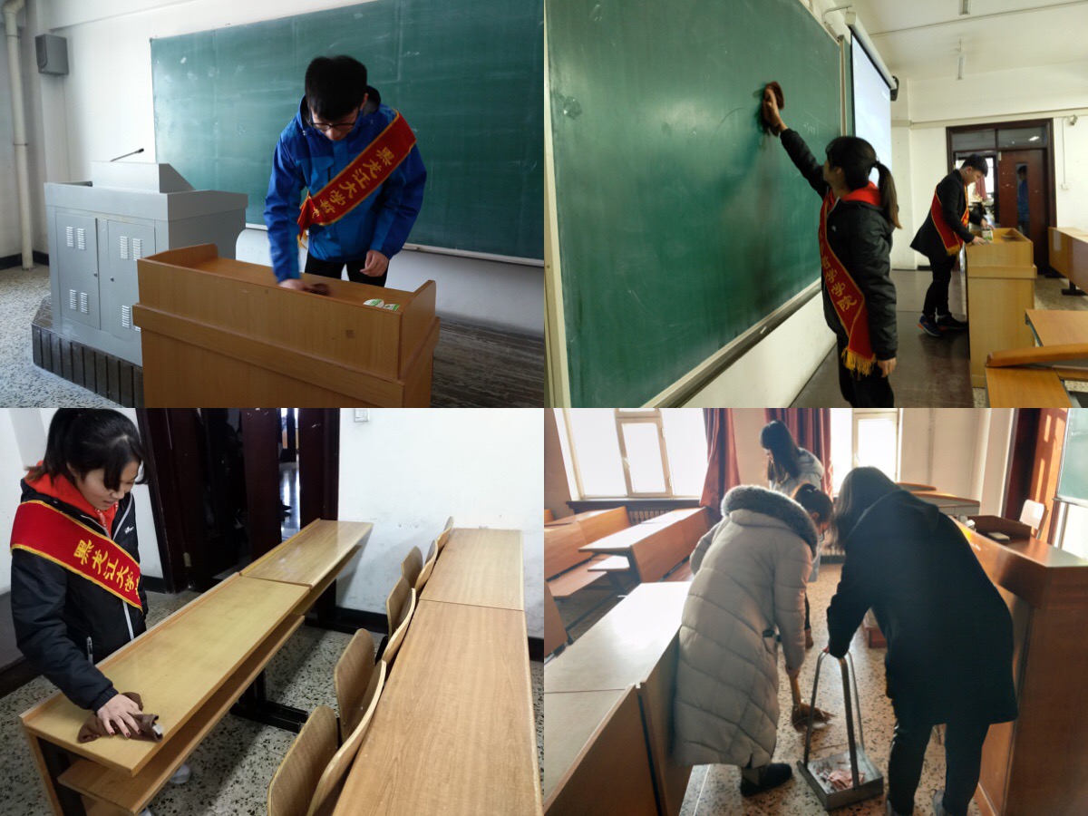 寒假结束,迎来崭新的春季学期。为了给同学们营造良好的学习环境,尽快适应新学期的学习生活,同时积极响应学校深入开展学雷锋活动的号召,进一步弘扬雷锋精神,2017年2月27日早7时,yl6809永利集团青协志愿者们在同学们上课之前分别来到汇文楼427、477、555等多个教室进行了志愿清扫活动。