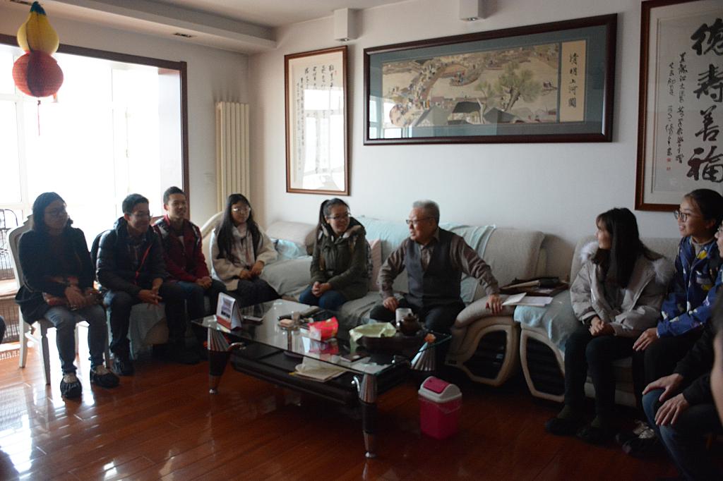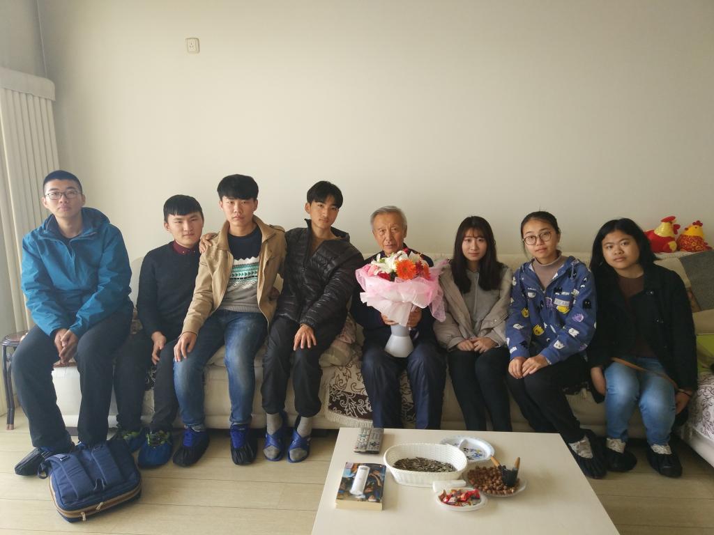 在曹林老师家中,曹林老师向同学们讲述了自己几十年的讲台生涯的经历,感慨地说"敬业爱生是为师之魂"!老教授教导同学们一定要有目标、有计划,不随波逐流,努力向自己的目标迈进,一定会实现自己的理想!