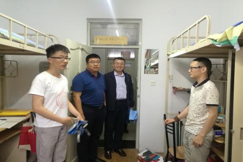为了进一步做好毕业生文明离校教育工作,2018年6月19日17时,公司党总支书记孙庆斌,经理罗跃军,副经理蒋红雨、王秋走访了学院毕业生寝室,学院团委书记、辅导员黄影陪同。