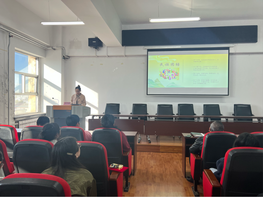 吴红英老师传达了学校《关于开展yl6809永利集团“石榴花开结同心 携手共筑中国梦”民族团结进步宣传月主题活动的通知》主要内容,对同学们提出要求和希望,要以铸牢中华民族共同体意识为主线,全面加强爱国主义和中华民族共同体意识学习。张博伦老师强调了开展“石榴花开结同心,携手共筑中国梦”民族团结进步宣传月的重要意义,要将党的二十大精神、习近平总书记关于加强和改进民族工作的重要思想、习近平总书记在黑龙江考察的重要讲话重要指示精神与学习生活紧密融合,不断增强维护民族团结进步意识与民族凝聚力。