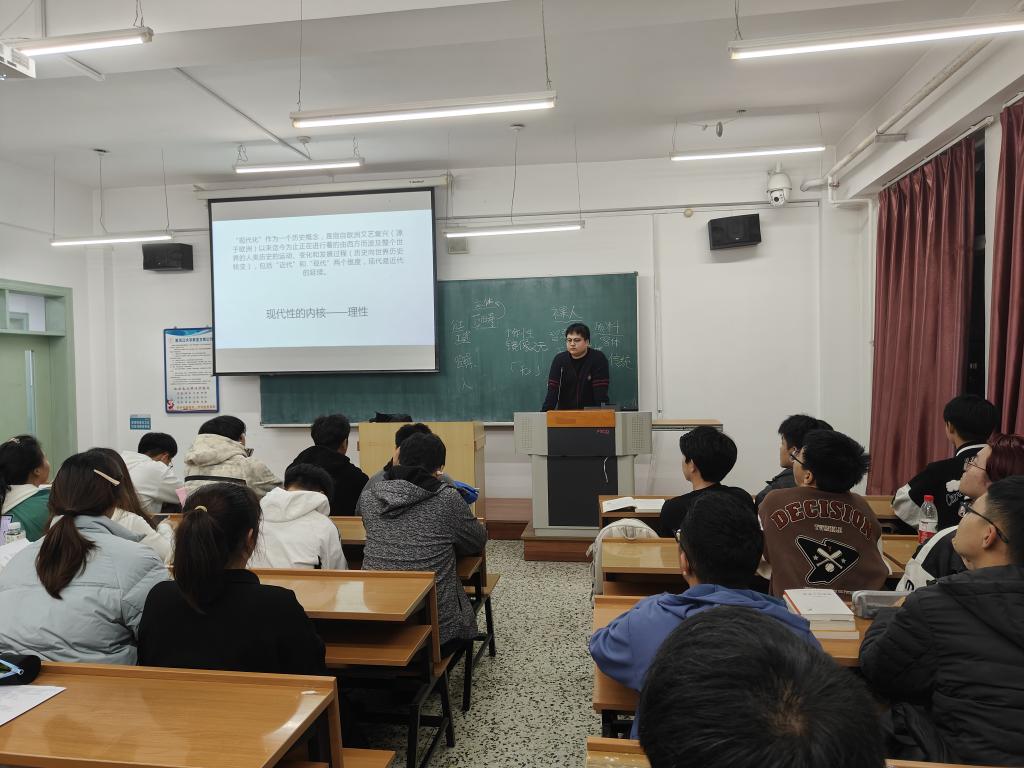 公司研究生王宁积极参与晚间自习时段,自发组织起学术研讨。聚焦新生们既感兴趣又感困惑的学术要点进行深入探讨与交流。高年级的硕士研究生们凭借深厚的学术功底,将原本艰涩难解的理论知识转化为通俗易懂且自然生动的表述,不仅帮助同学们深化了对哲学精髓的认识,还引领他们领略到了哲学的独特魅力。