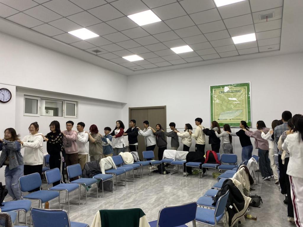 在彼此拉手围成的圆圈中,大家通过简单的互动逐渐熟络起来,让同学们迅速打破了初识的陌生感,初步建立了彼此的信任。