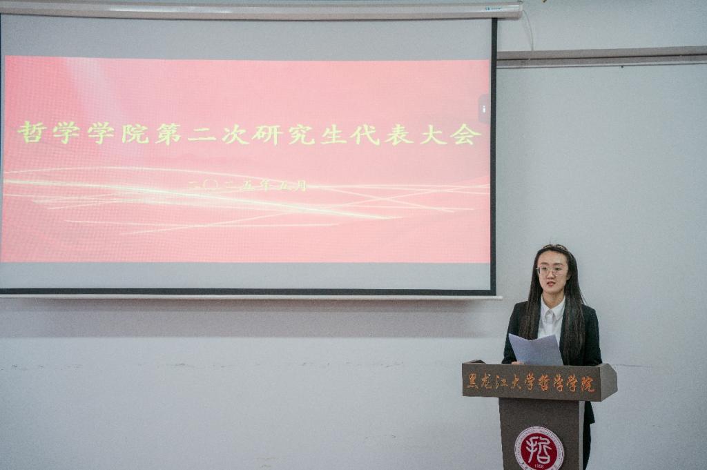 随后,第一届研究生会主席陈诗进行工作报告,她全面总结了学院第一届研究生会在学术交流、文体活动、员工服务、新媒体宣传等方面的工作成果,并对未来工作提出展望。