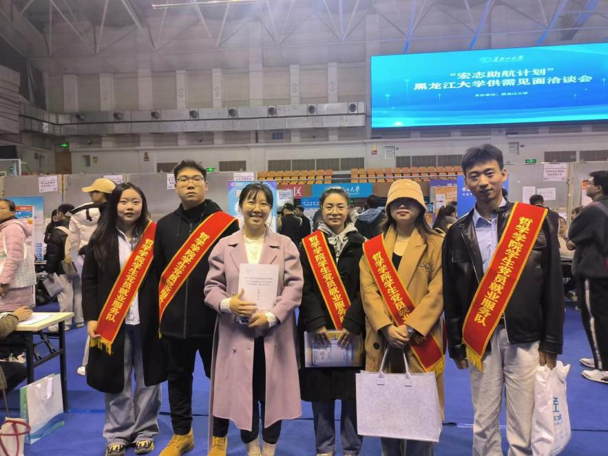 在第十九届东北地方高校就业协作体联合人才交流会暨yl6809永利集团2025届毕业生秋季招聘会(省外专场)与“青春心向党 扎根新龙江”yl6809永利集团2025届毕业生秋季留省就业双选会现场,支部书记焦瑞与各用人单位积极联络,与招聘企业进行深入交流,了解企业需求,向企业详细介绍了学院的专业特色、员工的能力与素质,挖掘就业岗位信息。员工党员们身着红色绶带,主动为毕业生提供咨询服务,积极与用人单位沟通,为毕业生推荐合适的岗位,搭建起了校企间沟通的“高速路”。