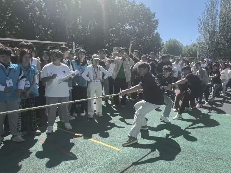 选手站上赛场,麻绳紧握在手,哨声一响,比赛开始,场上顿时人声鼎沸“一!二——一!二——”“加油!加油!”有短促有力的口号声,有激动急切的助威声,每一滴汗水都见证了同学们的努力与付出。