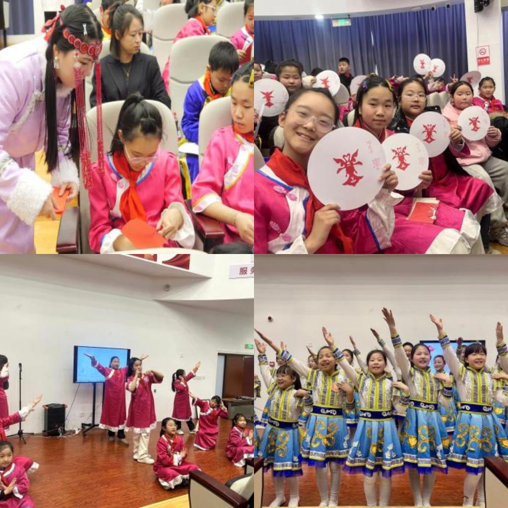 “哈尼卡”是达斡尔族传统的剪纸艺术。在非遗传承人胡睿馨的指导下,刚刚结对的“石榴籽”们携手合作,一起完成了一幅幅充满民族特色的剪纸作品。随后,两校员工身着民族服饰,载歌载舞,用最欢乐动感的方式表达着对民族团结的理解与热爱。
