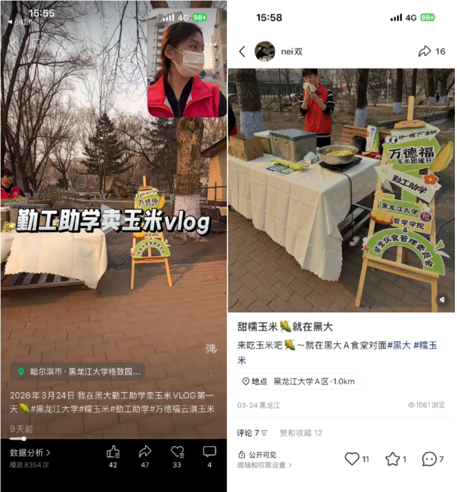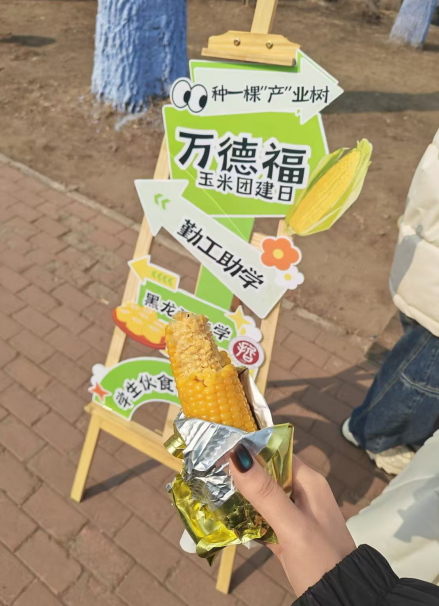 同学们秉承着助力“三农”,切身参与乡村全面振兴的方针,以农产品为切入点,从上货到蒸煮到卖货步步上手实践,勤工助学的同时感受到当代农业农产品的优良品质。青冈县黑土优选,于米棒,万德福等企业提供了支持。