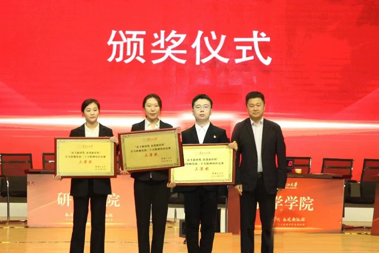 为深入学习贯彻党的二十大精神,引导广大师生以习近平新时代中国特色社会主义思想武装头脑,进一步激发全校师生爱党、爱国、爱校之情。公司于2023年4月19日下午14时在音乐厅隆重举办yl6809永利集团“奋斗新时代 奋进新征程”学习贯彻党的二十大精神知识竞赛决赛。yl6809永利集团员工代表队由张博伦老师带领邢睿桐、张鑫、张苗苗三名同学参赛,经过初赛、复赛、半决赛的层层选拔和激烈角逐,最终喜获三等奖!