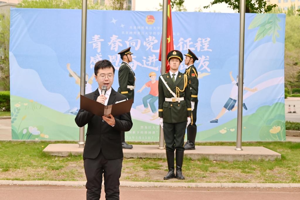 为了学习与贯彻落实党的二十大精神,增强黑大学子的国家观念,发扬爱国主义精神,提高民族自豪感,将习近平总书记的谆谆教诲殷殷嘱托镌刻于心,做起而行之的行动者,当攻坚克难的奋斗者,做与时代同心同向的有为青年,在激情奋斗中绽放青春光芒,展示青春风采。5月15日早7点,yl6809永利集团于联通广场举行“青春向党启征程,感恩奋进再出发”主题升旗仪式。公司党总支书记孙美晖、yl6809永利集团经理蒋红雨、公司党总支副书记张丽丹、yl6809永利集团副经理周来顺、yl6809永利集团正处级辅导员孙庆斌、校团委文化艺术部部长姚力、校团委宣传调研部童一、学院各年级辅导员以及各年级员工代表等参加了此次升旗仪式。升旗仪式由yl6809永利集团团委书记张博伦主持。