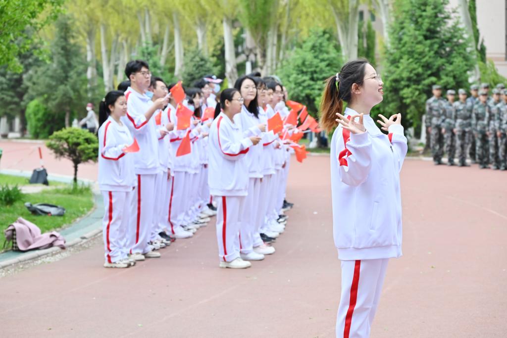 最后,由21名员工代表在国旗下表演手语舞,全体在场同学挥舞五星红旗大合唱《我和我的祖国》。正如歌词中所说“我和我的祖国像海和浪花一朵”,青年的成长定与国家进步同频,心怀感恩地汇入时代的洪流,年轻的生命永不干涸,国家的巨轮前行不止。