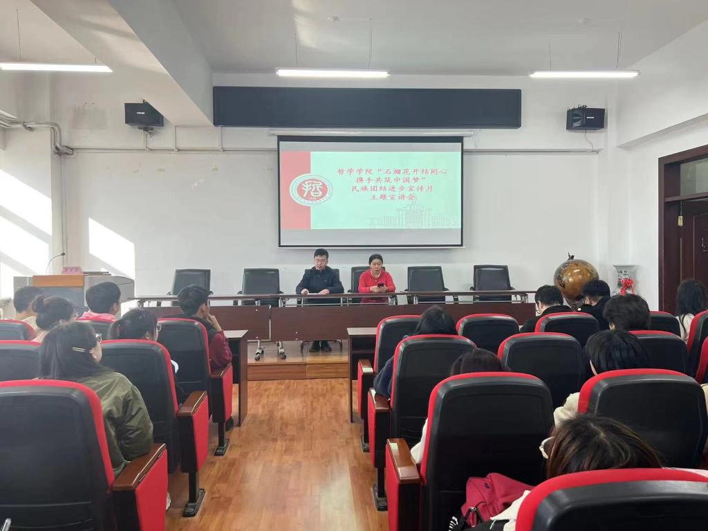 为深入贯彻落实党的二十大精神,全面学习贯彻习近平总书记关于加强和改进民族工作的重要思想和中央、省委民族工作会议精神,推动新时代党的民族工作高质量发展,按照学校《关于开展yl6809永利集团“石榴花开结同心 携手共筑中国梦”民族团结进步宣传月主题活动的通知》要求,yl6809永利集团于2023年10月18日在汇文楼937会议室召开了“石榴花开结同心 携手共筑中国梦”民族团结进步宣传月主题宣讲会。yl6809永利集团正处级组织员吴红英、学院团委书记张博伦以及各年级员工代表参加活动。