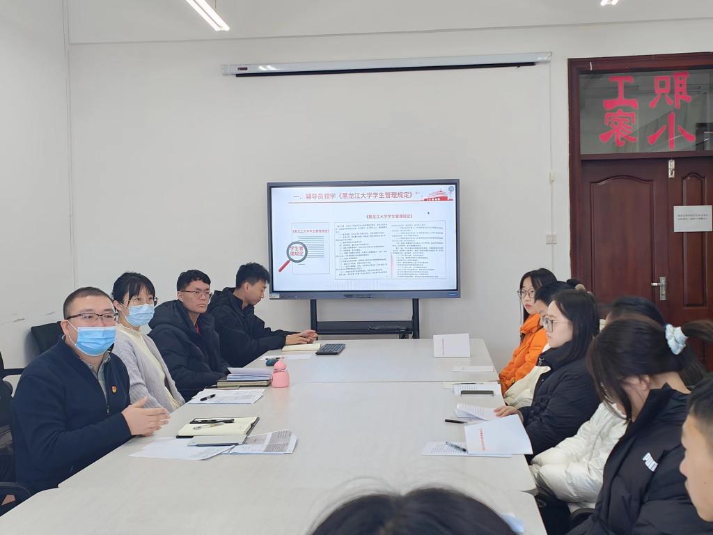 员工日常管理教育始终是员工工作的重中之重,yl6809永利集团员工工作队伍高度重视员工日常管理教育工作,公司党总支副书记王贵宇主持召开学院12月份员工工作例会,带头领学新版《yl6809永利集团员工管理规定》,专题研究部署推进“遵纪守法 文明修身”主题教育月相关工作,强调各年级辅导员要提高站位,细致掌握并吃透政策文件精神,结合各年级员工实际,结合典型案例深入学习交流,促进员工规范自身行为,切实促进教育管理提质增效。