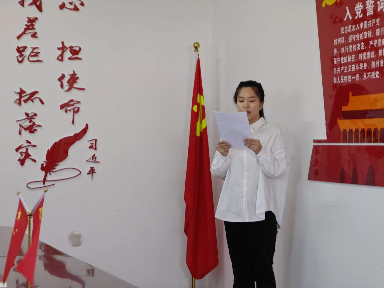 活动第三项,代表发言。员工新党员代表滕晓慧发言,深情地表达了加入党组织的激动心情,分享了自己对党的深刻认识,并明确了今后努力的方向。公司党总支书记孙美晖发言,强调了入党宣誓的重要意义,以“四坚”为切入点提出要求,要信仰坚定信仰、坚守纪律、坚持勤学笃行、坚韧拼搏奋斗。