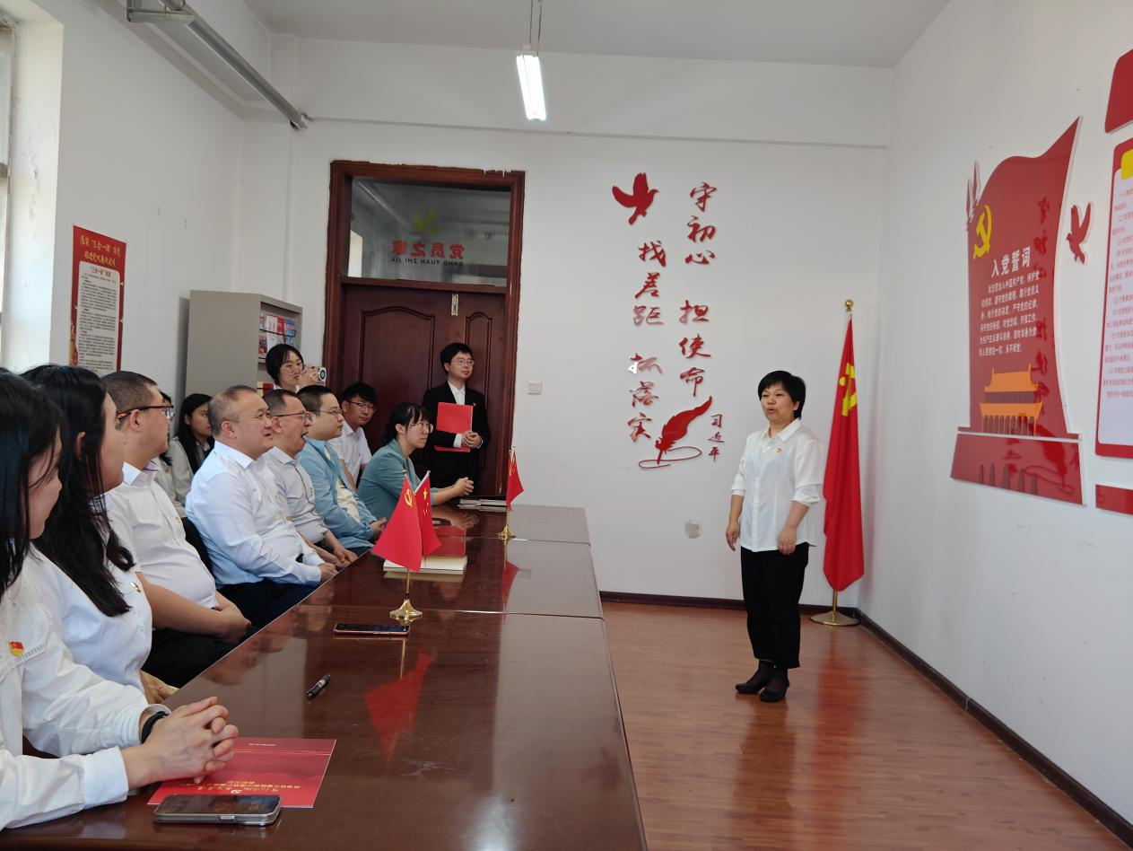 活动第二项,宣读入党誓词、佩戴党员党徽。在领誓人的带领下,教师老党员们和员工新党员们一同面向党旗,整齐列队,宣读誓词,声音洪亮而坚定。他们用誓言表达了对党的忠诚和为共产主义事业奋斗终身的决心。紧接着,由教师老党员们为员工新党员们佩戴党员党徽,这一刻岁月的沉淀与青春的活力交汇,责任与使命在无声中传递。