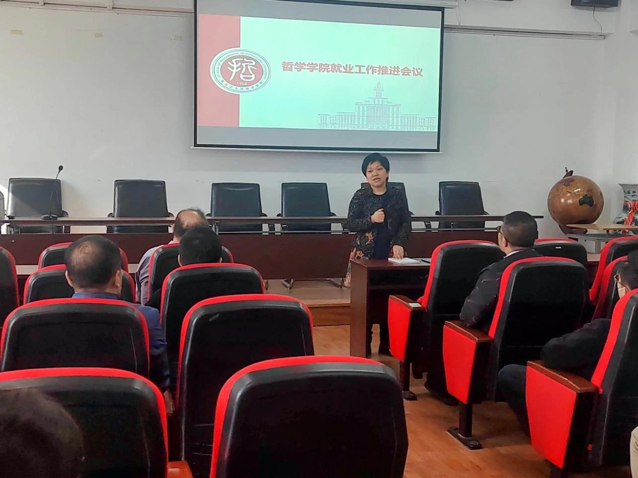 党总支书记孙美晖在大会上讲话,代表学院党总支向踏上求职征程的2024届毕业生致以最美好的祝愿,并结合哲学专业特点,对毕业生提出了四点建议:一,明确就业方向,做好求职规划,根据自身实际情况和兴趣爱好,审慎选择适合自己的职业领域。二,提升综合素质,增强竞争力,通过不断学习新知识、新技能,提高自己的语言表达、团队协作和创新能力。三,转变就业观念,拓宽就业渠道,用历史和长远的眼光看待求职。四,关注身心健康,积极应对挑战,保持乐观向上的求职心态。同时,学院将进一步加强就业指导和服务工作,为毕业生提供更加全面、精准的就业信息和指导。党总支副书记王贵宇介绍了2022届、2023届毕业生的就业基本情况,就业信息获取渠道,求职时间规划与材料准备,就业政策和就业手续办理注意事项,并讲解了学院就业工作的主要做法和成效。他鼓励毕业生要主动关注就业信息,积极参加各类招聘会,多渠道了解就业市场和用人单位的需求,以更加严谨的态度和更加饱满的热情投身到求职和未来的工作中去,为实现自己的人生价值和事业梦想而努力奋斗。