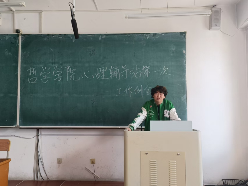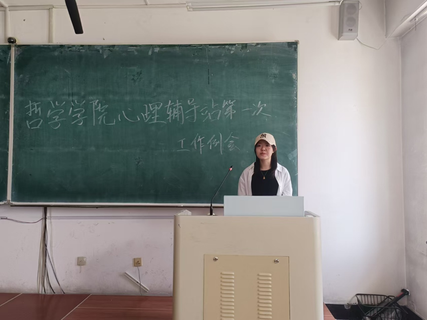 会议开始,二级心理辅导站副站长曹旭睿进行发言,提及二级心理辅导站的重要作用,强调要加强学校—学院—员工的重要关系,认为心理站干事应从学院二级心理辅导站为基,完善完成学校各活动安排,并且给哲学院各员工健康的心理活动体验,提醒各干事的职能作用,加强心理站与员工之间的联系。