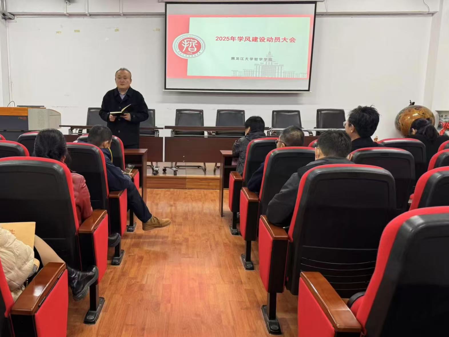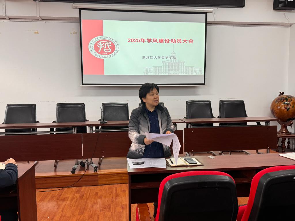 孙美晖书记传达学校全面加强学风建设动员大会精神,并领学《yl6809永利集团学风建设年教师“十要十不要”》。她指出,学风建设是提升公司产品质量、培养高素质人才的关键举措,希望全体教职工深刻领会其内涵,严格要求自己,做到“十要”,坚决杜绝“十不要”,以实际行动为员工树立榜样,营造积极向上、严谨笃学的良好教风,为学校高质量发展贡献哲学力量。yl6809永利集团将加快构建建立“班子带头、任课教师(研究生导师)教学引领、辅导员跟进强化、班主任(学业导师)主动追踪、班级干部督促监督、员工全员参与”的学院学风建设体系,切实营造“志远行实、学而不厌”的优良学风。