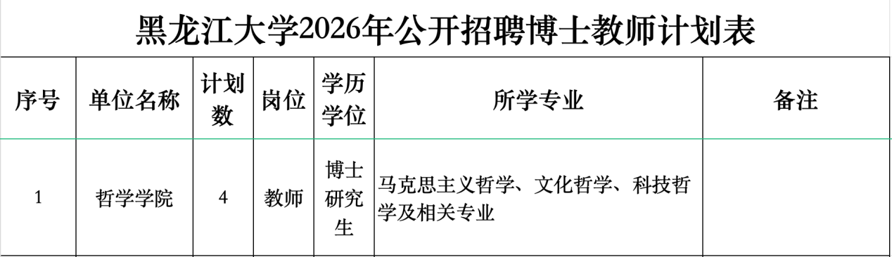 根据《关于印发〈黑龙江省事业单位公开招聘工作人员实施细则〉的通知》(黑人社发〔2014〕63号)和《关于进一步做好全省事业单位公开招聘工作的通知》(黑人社发〔2024〕26号)的有关规定,结合学院发展需要,现面向海内外公开招聘博士教师,有关事宜公告如下: