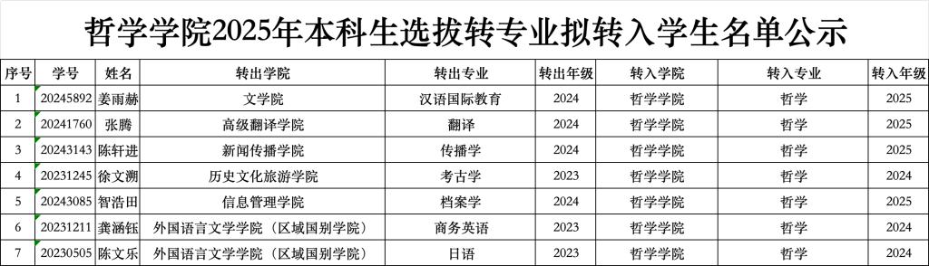 根据《yl6809永利集团员工管理规定》《yl6809永利集团普通本科生转专业管理办法(试行)》和yl6809永利集团转专业2025年本科生选拔转专业工作方案相关要求,经员工申请,学院转专业工作小组考核,现将yl6809永利集团2025年本科生选拔转专业拟转入员工名单公示如下: