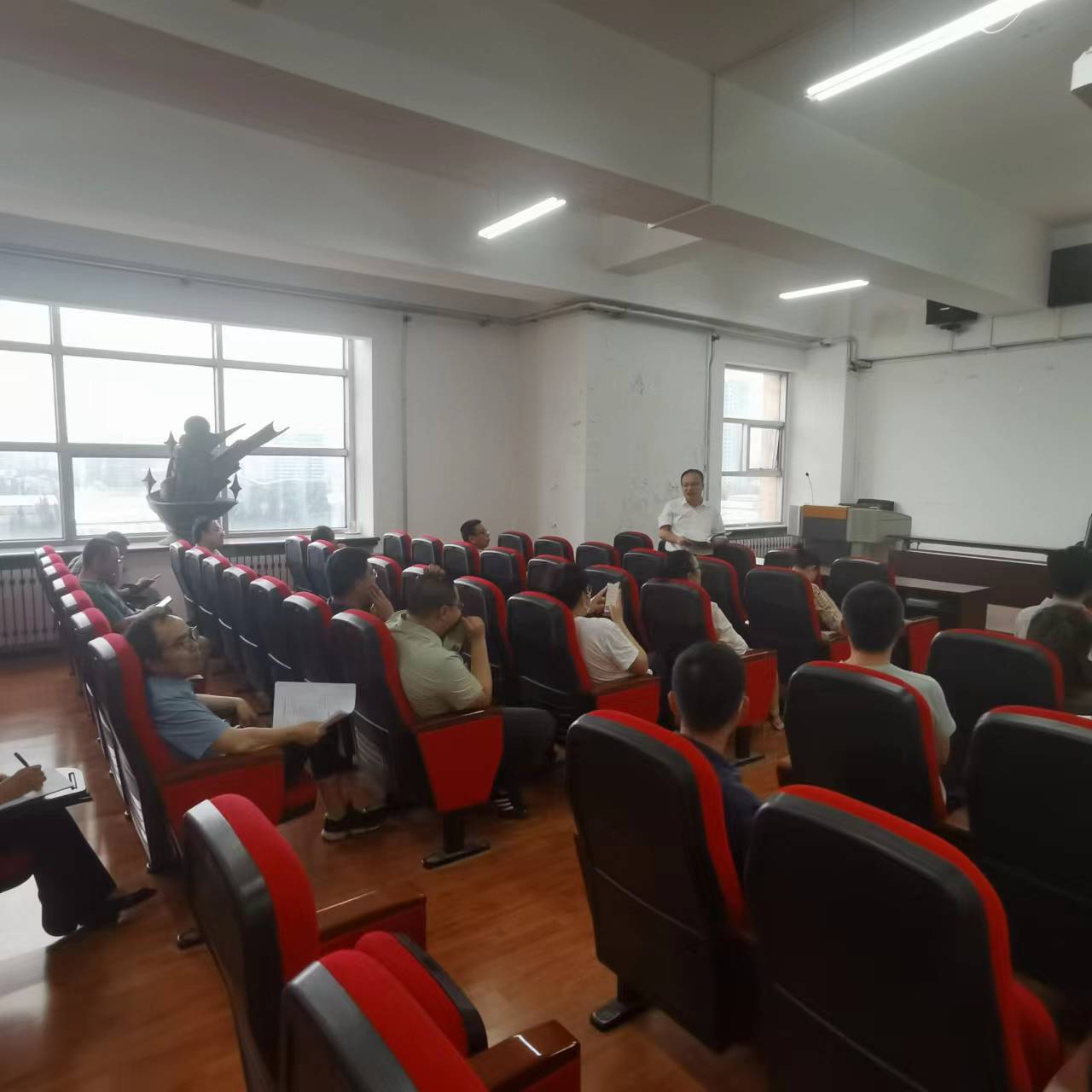 为贯彻落实学校“评建”工作会议精神,同时做好疫情后第一次线下期末考试组织工作,根据学校相关要求,yl6809永利集团于2023年6月28日下午两点,在汇文楼937会议室召开审核评估工作推进暨期末考务培训工作会议,会议由孙美晖书记主持,学院领导班子及全院教职工参会,部署期末考试的各项具体工作。