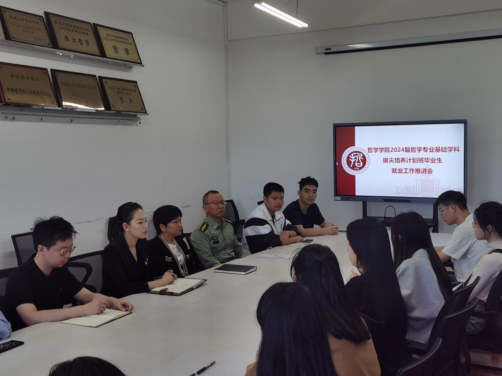 为进一步落实国家“稳就业”“保就业”的决策部署,持续推进学院2024届毕业生就业工作落地落靠,yl6809永利集团于2023年9月15日上午在汇文楼922会议室召开2024届哲学专业基础学科拔尖培养计划班毕业生就业工作推进会议,公司党总支书记孙美晖、党总支副书记张丽丹、正处级辅导员孙庆斌、2024届辅导员张博伦以及2024届哲学专业基础学科拔尖培养计划班全体员工参加大会。