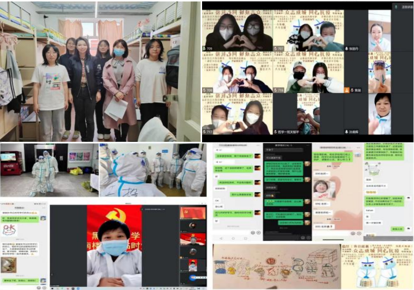 在特殊时期里,员工会全体上下同心以抗疫,护岁月之静好。公司领导、老师多次走访寝室,员工会同学积极配合疫情防控要求,在寝室封控管理期间,担当起全心全意为同学服务的责任,按时按点地为同学们发放饭菜和物资,开展“共克时艰,云端相伴”寝室云走访活动,以志愿者的身份和全体哲院学子共克时艰,云端相伴迎接春暖花开。