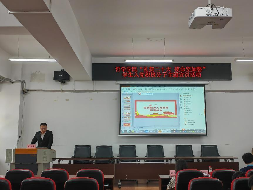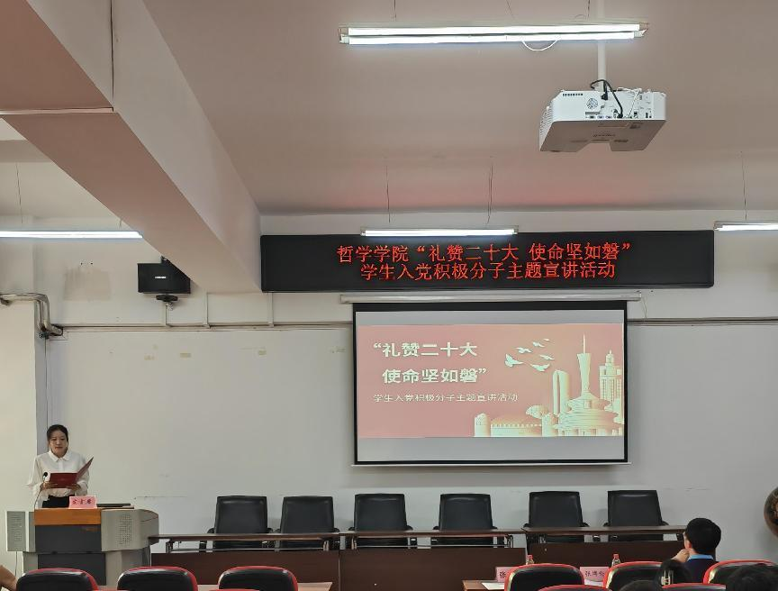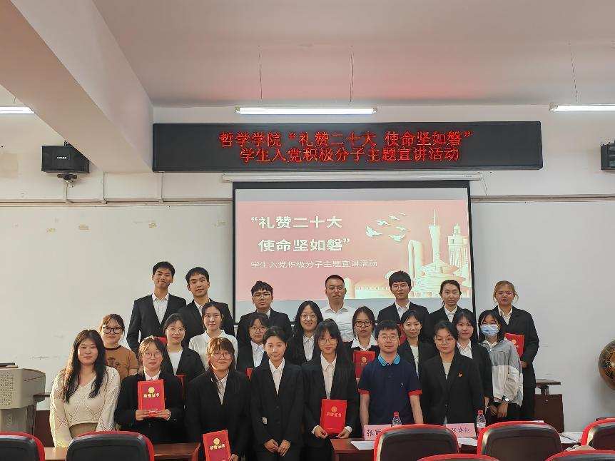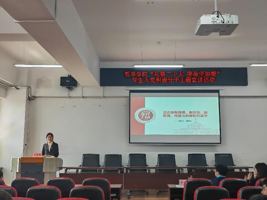 通过这次主题宣讲活动,相信同学们一定认识到了新时代青年的主要任务、强化了新时代青年的使命与担当、明确了如何践行党的二十大精神。希望同学们通过这次活动能够树立理想信念、厚植爱国情怀,争做勇担重任的新时代青年。盛世逢盛会,奋斗正当时,黑大学子,将以青春作桨,以梦想为帆,让青春之光照亮奋进之路。