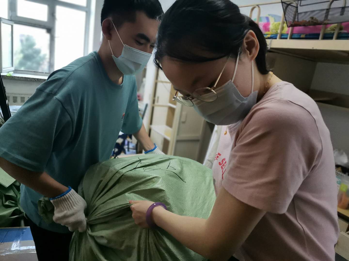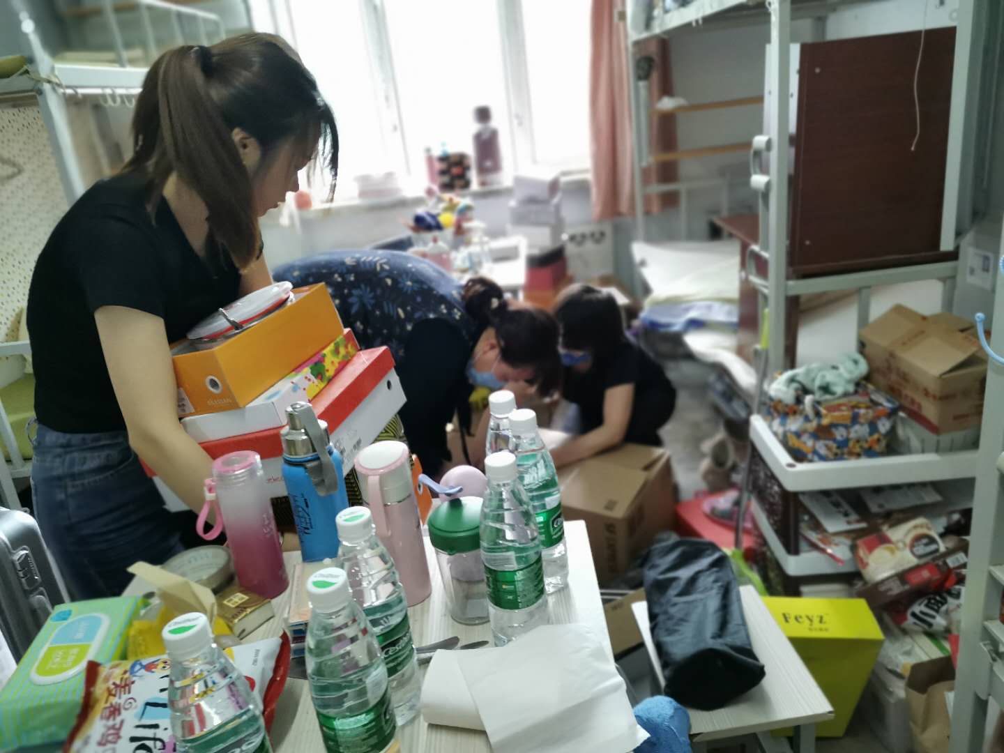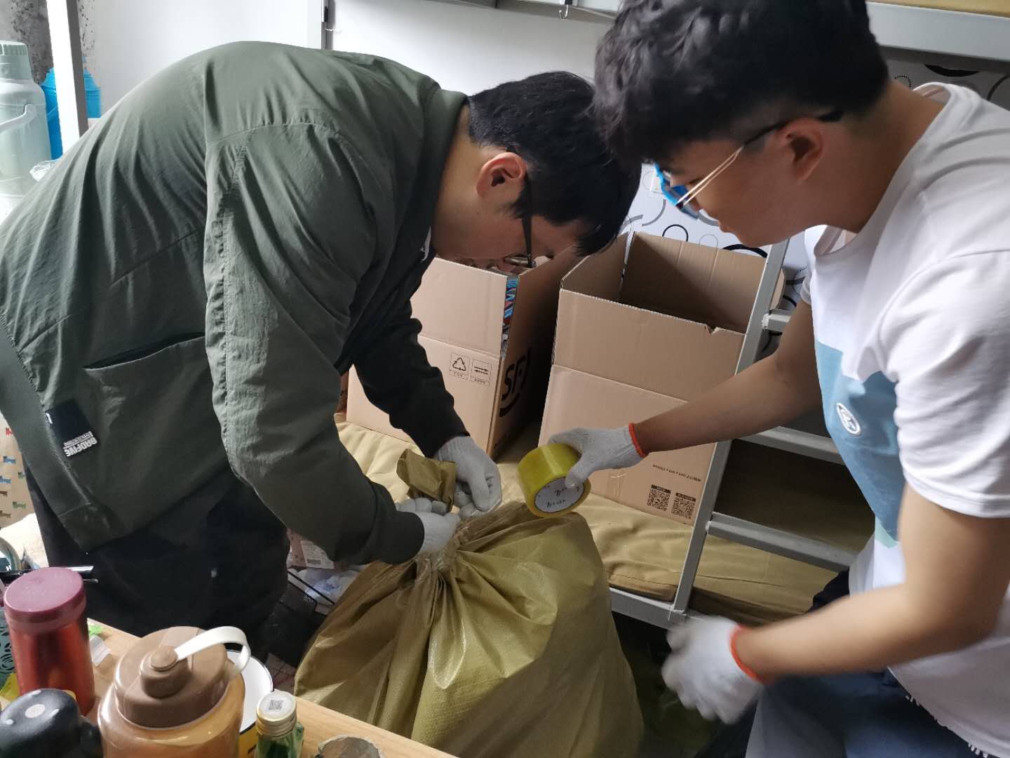 毕业生党员员工干部,不辞辛劳,不畏苦累,认真负责,周到细致,利用微信视频电话、腾讯会议等形式,与其他未能返校同学进行沟通联系,分清物品归属,清理废弃物品,整理打包行李,对于贵重物品、精密易碎物品,毕业生党员员工干部提前与同学们确定并填写物品清单,保障行李整理无遗漏,提升整体效率,保质保量完成毕业生行李整理工作。